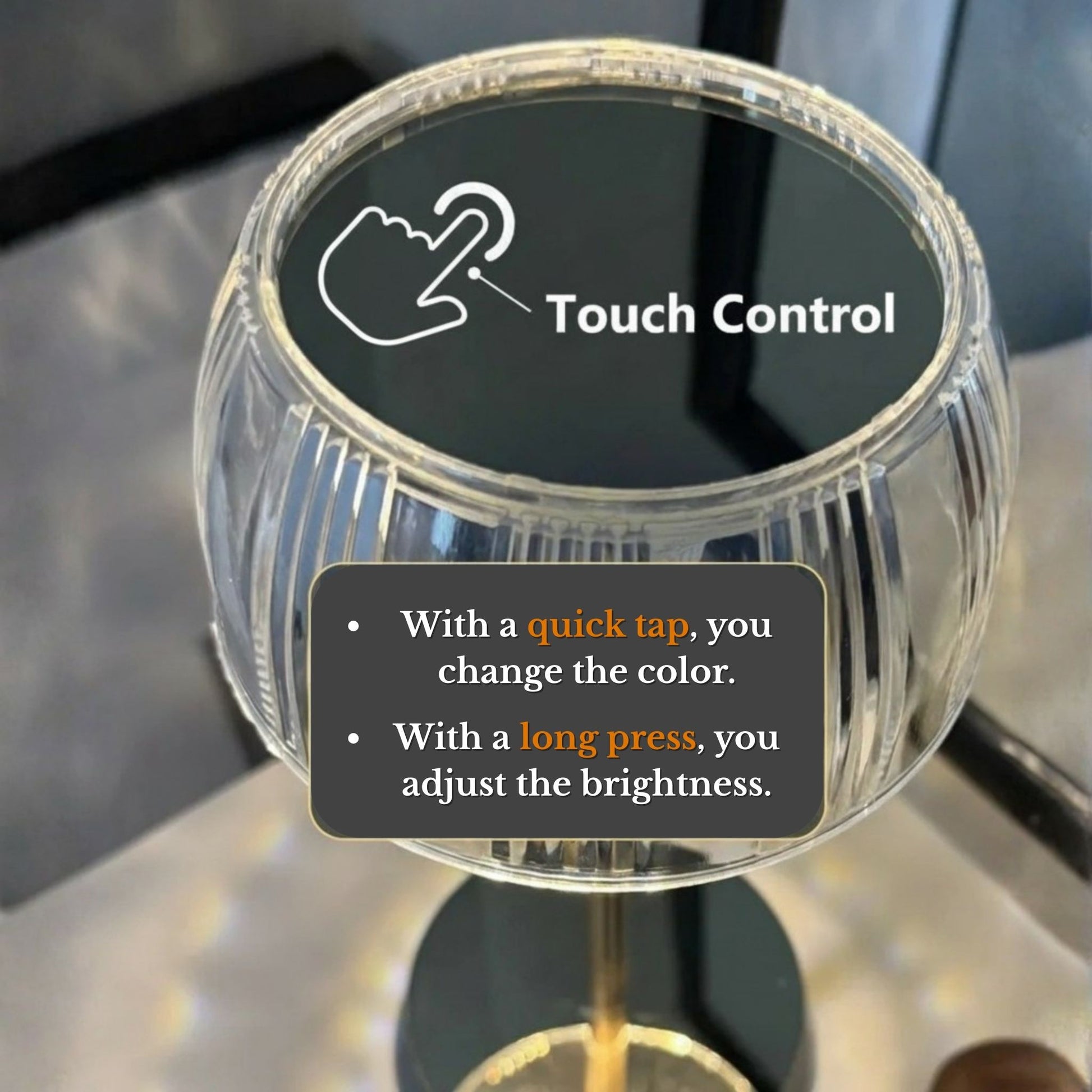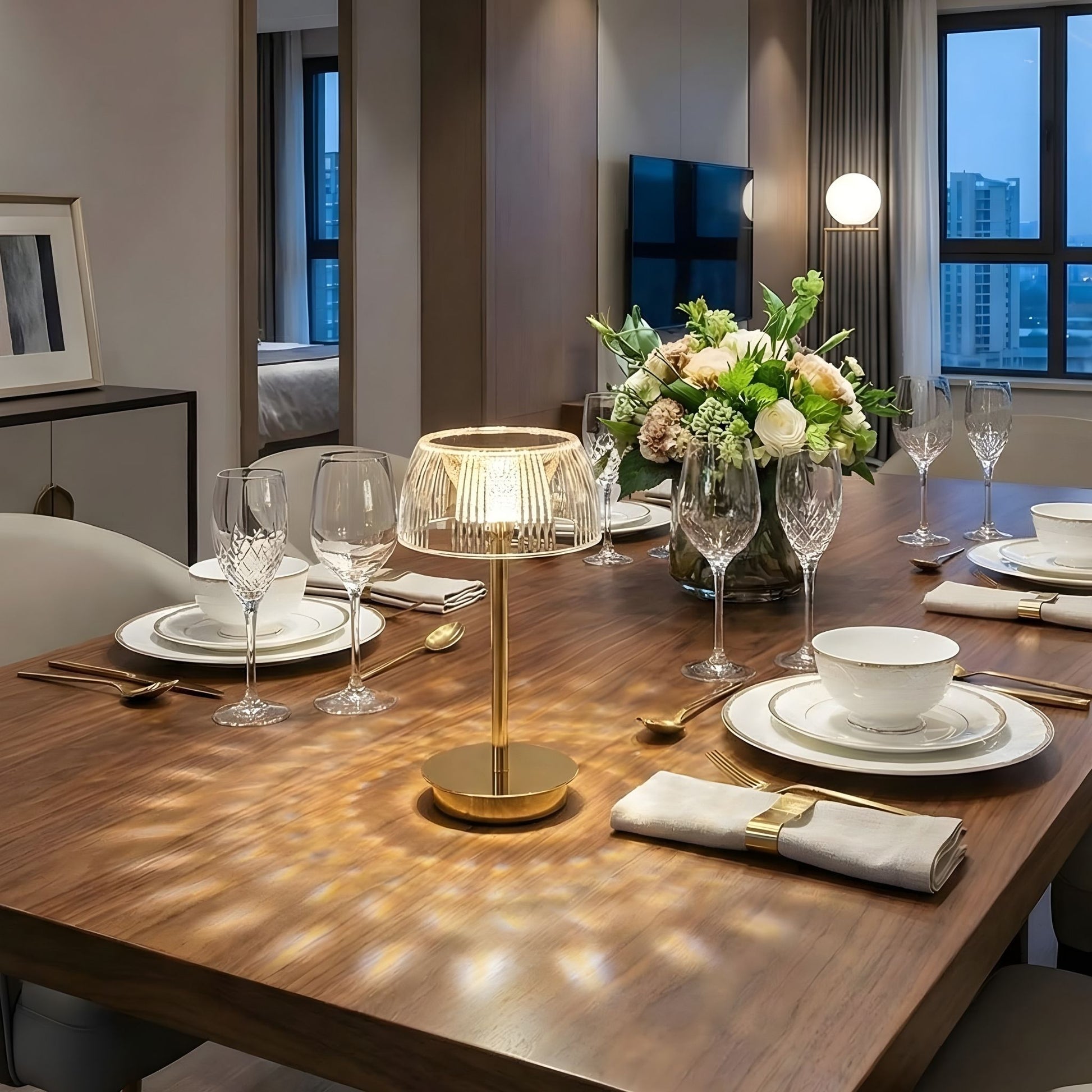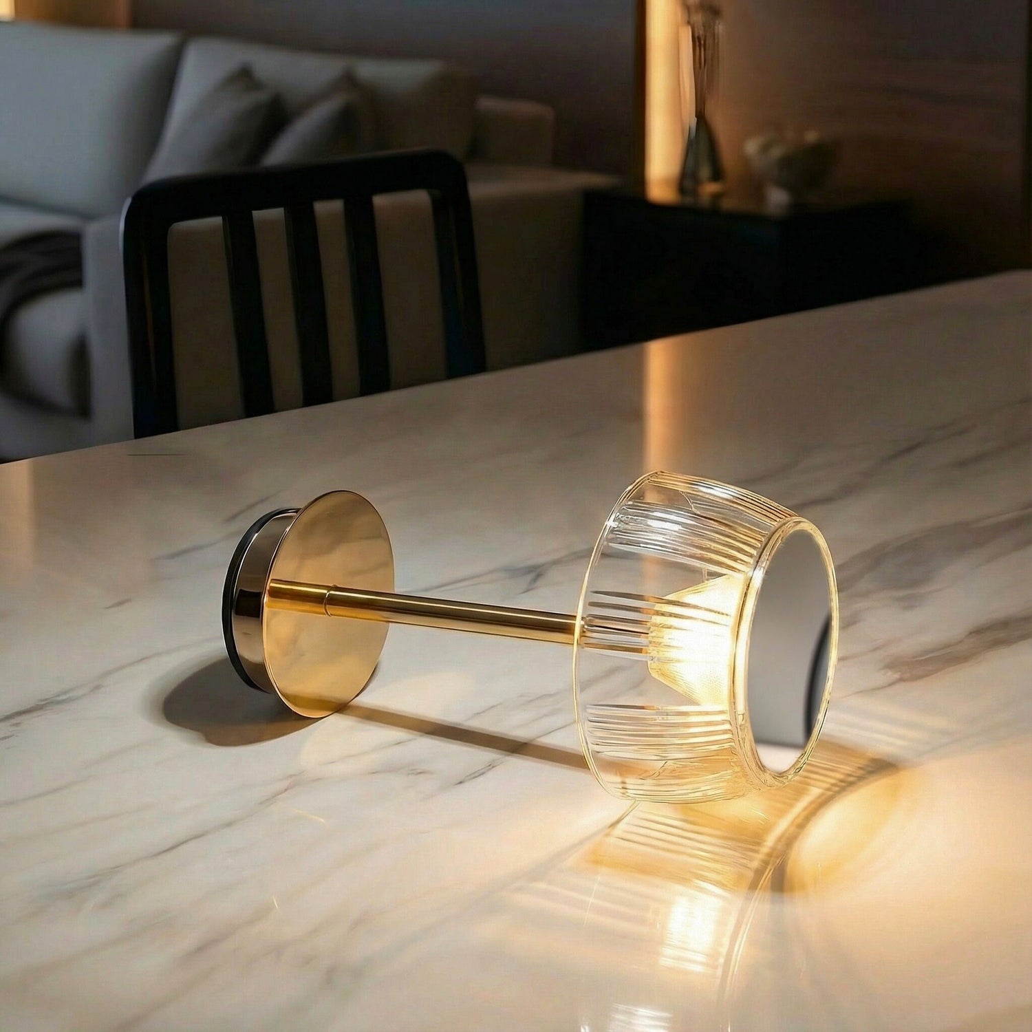 Brillay features a crystal-effect shade engineered to cast mesmerizing reflections across your table — a signature glow that elevates any space. Its gold-finish body adds elegance, while the anti-slip base keeps it stable on any surface.
