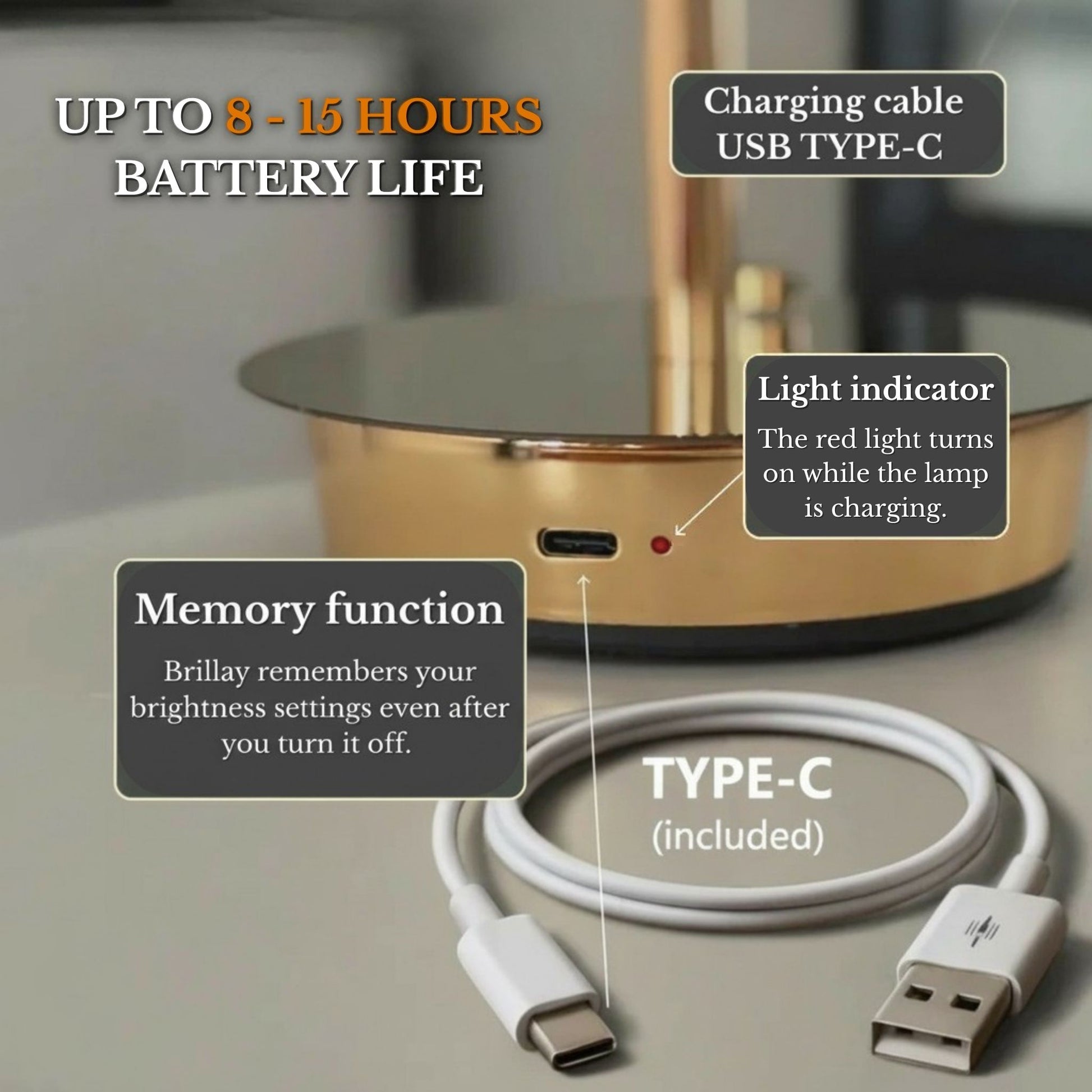 Brillay lasts between 8–15 hours on a single charge, depending on the brightness level you choose. It’s designed for everyday use without the need for constant recharging.